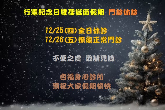 行憲紀念日暨聖誕節假期門診休診 12/25(四)全日休診